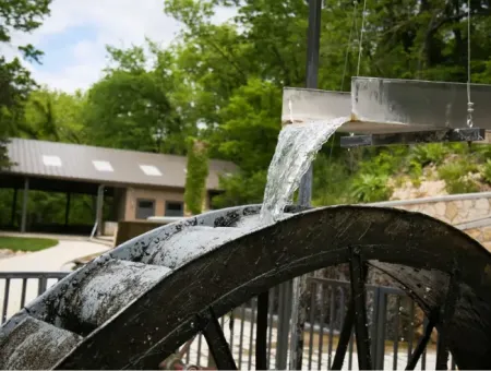 Take a moment to soak up the beauty of the Spring Plaza. You will find the famed Rock Springs Water Wheel that turns in the second largest spring in Kansas. The spring serves as the water source for all of Rock Springs Ranch.