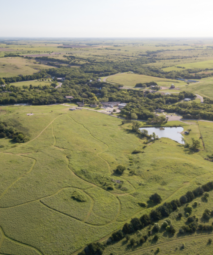 Our connection to the prairie runs deep, and we are dedicated to its preservation. Only about 4% of Kansas' original prairie remains, and here at Rock Springs, we work tirelessly to protect the 735 acres that make up our land. Additionally, the ranch is located on top of one of the largest ground springs in Kansas, providing all the water needed to sustain our operations.