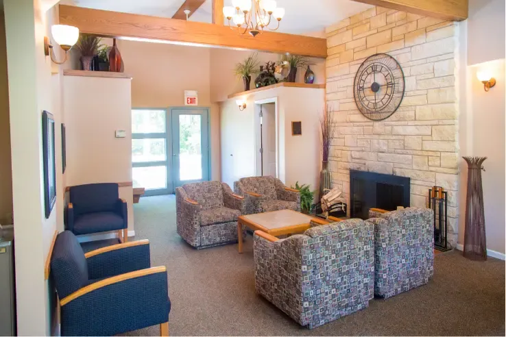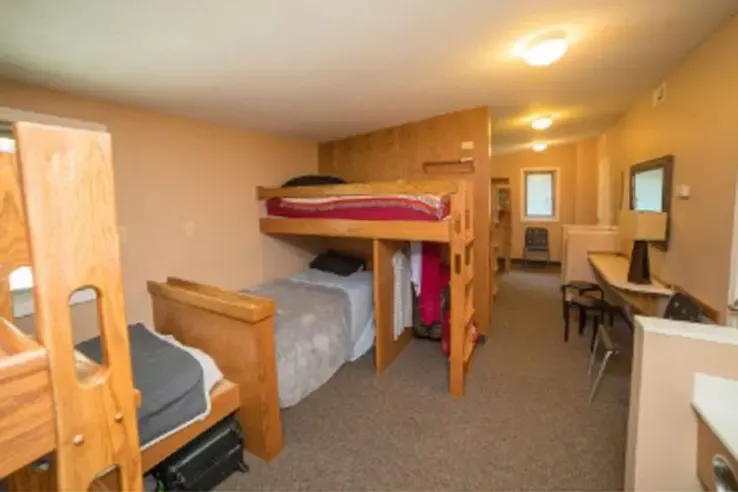 You will be greeted in the common lobby which features comfortable lounge furniture and a fireplace for gathering. The lobby leads into four sleeping rooms nestled among the kitchenette and screened-in porch. Be sure to meet at the outdoor fire pit and tell some tall tales.